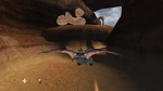The Quetzalcoatlus handles very simply during flight mode: it flies forward at all times and can be turned on both the x- and y-axes. Left and right turns can be turned into something resembling a roll by pressing the dedicated roll left/right buttons/keys. The Quetzalcoatlus has the same amount of health as the player does on foot, and it can be killed nearly instantaneously by unfortunate collisions with level geometry.