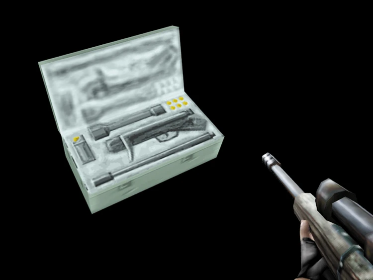 This weapon looks much like the average sniper rifle, with a long barrel, a short, blocky stock, and a scope on the top of the gun's body, which can be used by pressing Right on the N64's D-pad.