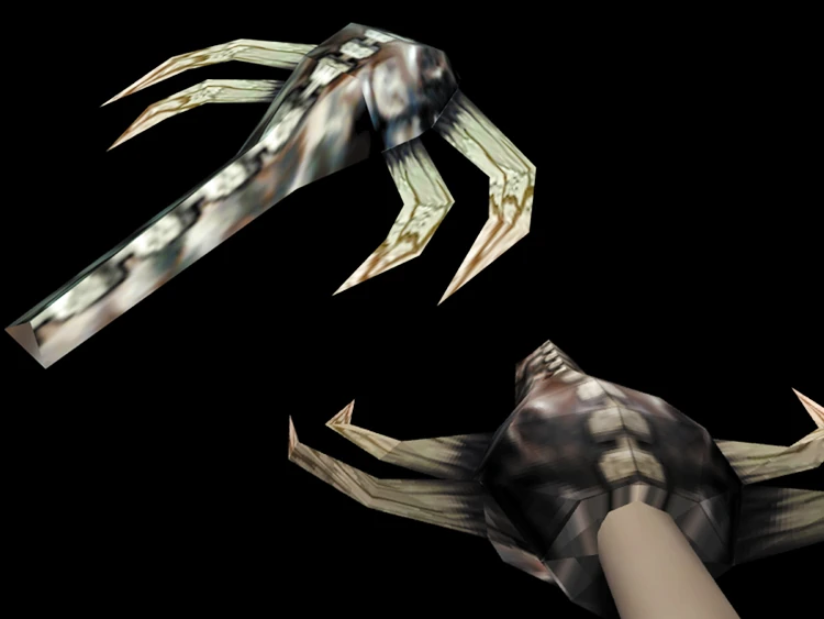 The Vampire Gun is a strange, hand-mounted, life-absorbing creature that transfers its collected energy into the wielder. It must be used at close range in order for the weapon to function properly, otherwise the wielder will unwillingly be harmed in the process. If the wielder has located a nearby enemy, this weapon can be used.